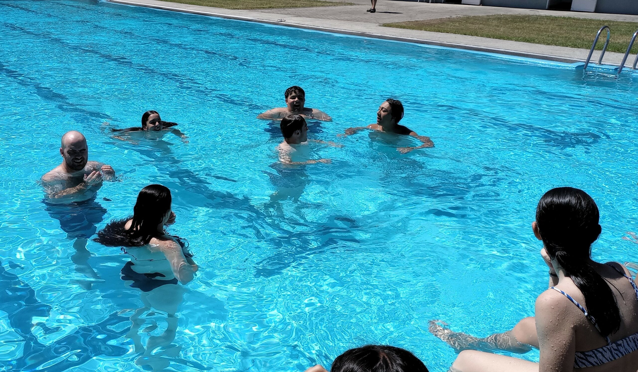 Iniciamos nuestra aventura el jueves 3 de julio. Nuestro grupo en esta ocasión era un tanto peculiar: catorce chicas y solo dos chicos. Entre los educadores y el equipo de cocina, sin embargo, había más varones que mujeres. Un microbús nos llevó a Laza, un pueblo de Orense en la Galicia mítica y montañosa. Una vez asentados en el polideportivo y hechas las presentaciones de rigor, nos bajamos a bañar la playa fluvial del pueblo pues era un día especialmente caluroso. Allí disfrutamos de una especie de piscina en medio del río Támega.