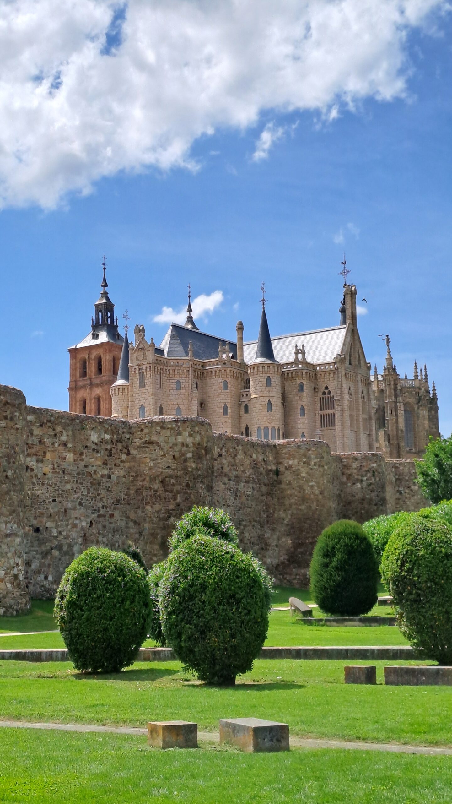 El día siguiente lo dedicamos a recoger y a viajar, aunque sería más apropiado decir a dormir porque, por lo menos en la primera parte del viaje, la mayoría fue dormida. Paramos a comer en Astorga, detrás de la muralla romana, con la catedral de fondo y casi a la sombra del Palacio Episcopal, una de las obras más afamadas de Gaudí.