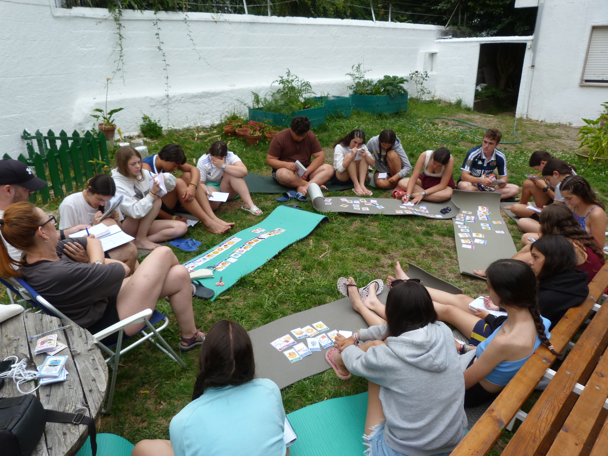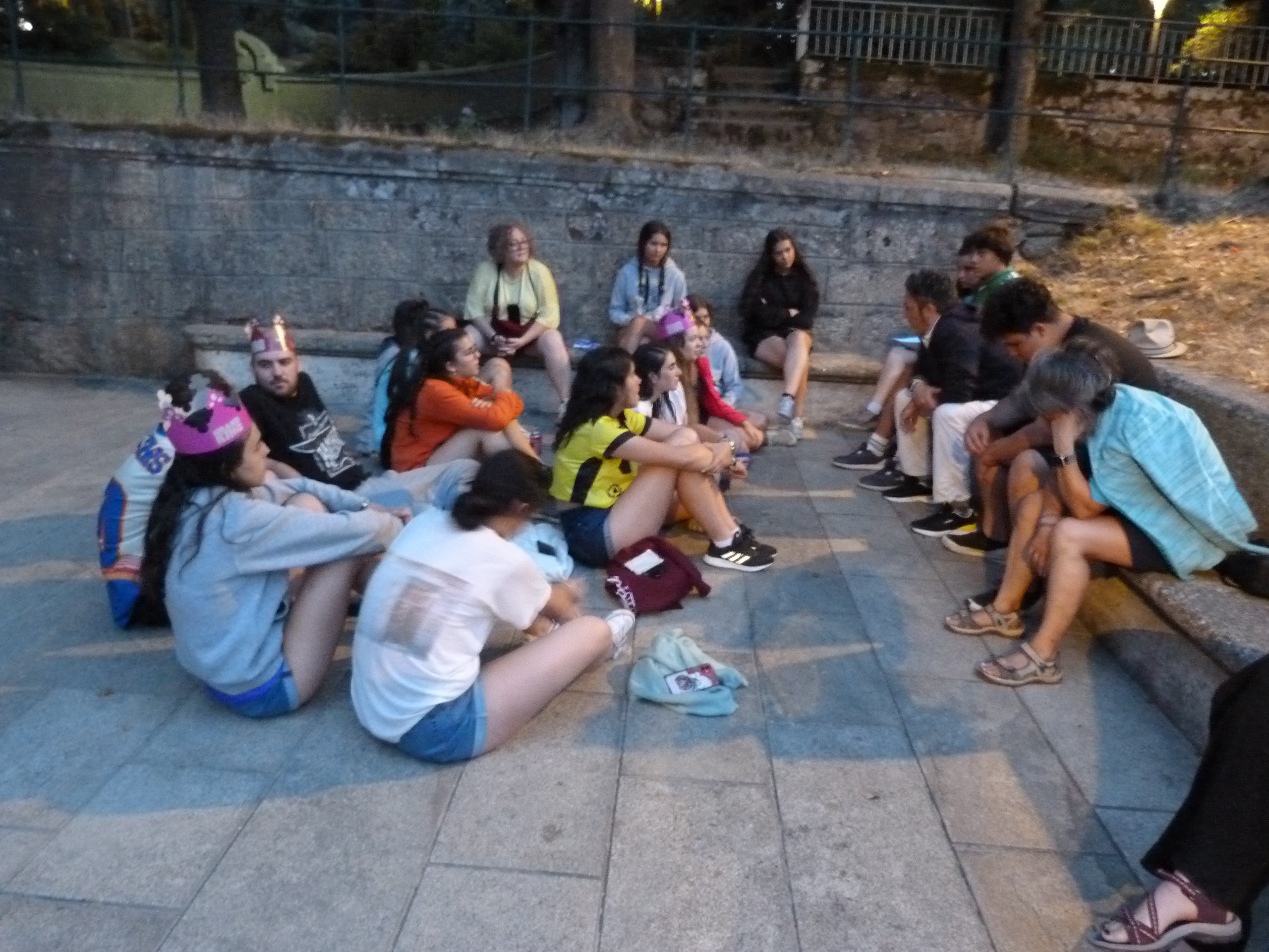 Tras el merecido descanso (casi todos siesteamos un rato), Miriam presentó los proyectos próximos que estamos preparando en Parteluz, que en buena medida coincidían con los que los jóvenes peregrinos propusieron: piscina, comida juntos, alguna actividad formativa en verano, excursiones, ascensión a Urbión, visita a Puy du Fou. Y la novedad para el curso que viene: “El viaje del héroe”.