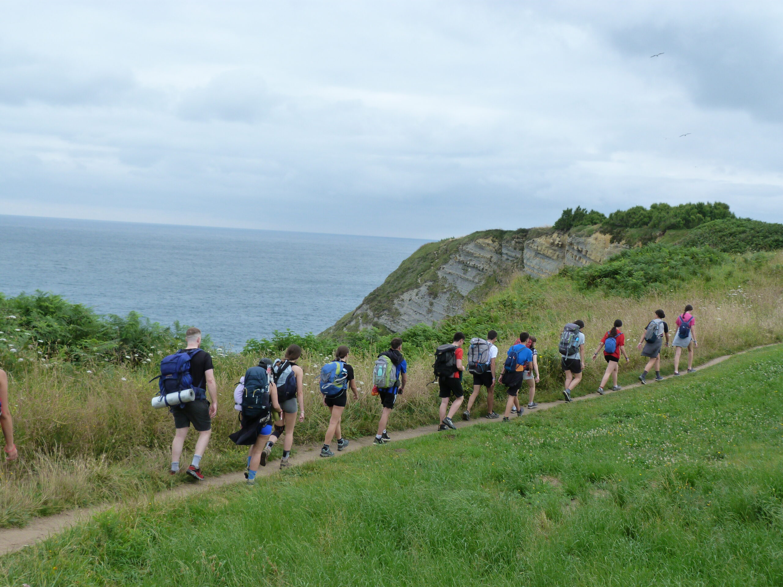 El jueves 6 iniciamos el día reflexionando acerca de los ideales por los que merece la pena luchar, para poner rápidamente rumbo hacia Ajo, un pueblo situado a 29 kilómetros de Santander. La ruta, de 16 kilómetros, comenzó en la arena y continuó bordeando acantilados, con unas vistas espectaculares del mar, el verde y los grandes chalets con vistas que algunos anotaron comprarse cuando se jubilen. El día, nublado, y la temperatura, estupenda, hicieron esta primera marcha muy agradable.