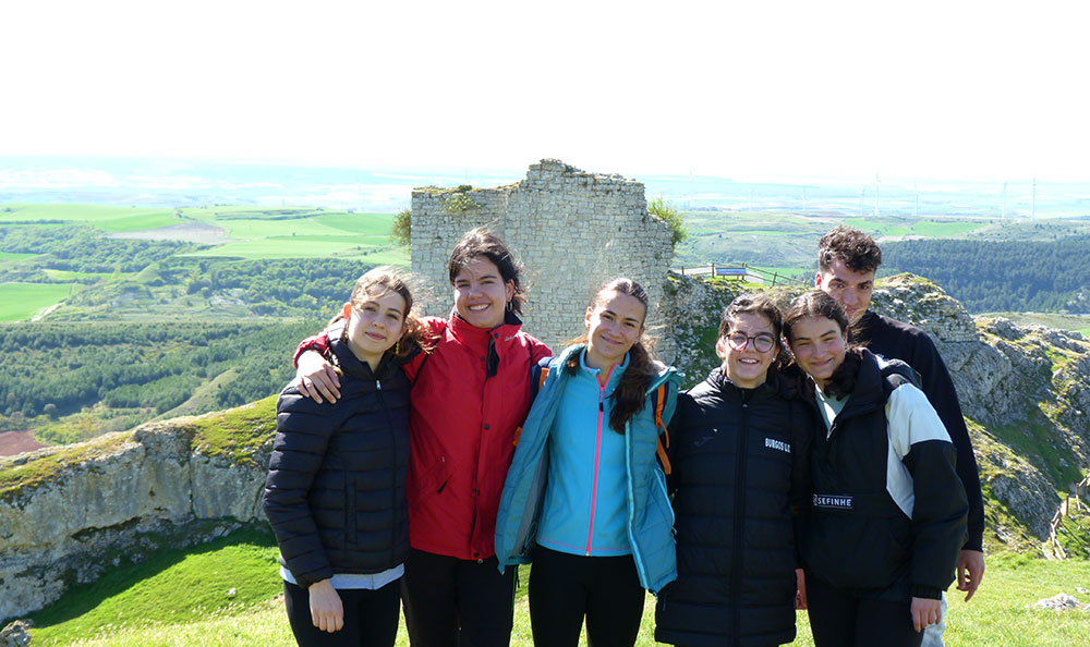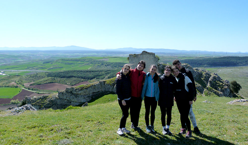 Al coronar la ladera nos encontramos una fila de aerogeneradores que desdicen de la belleza y la historia de esos lares. Es el tributo a la ecología. Caminando un poco menos de dos kilómetros por lo alto de las peñas llegamos a las ruinas de un castillo del siglo XI, cuando Castilla hacía frontera con el reino de Navarra en los tiempos de Sancho el Mayor.