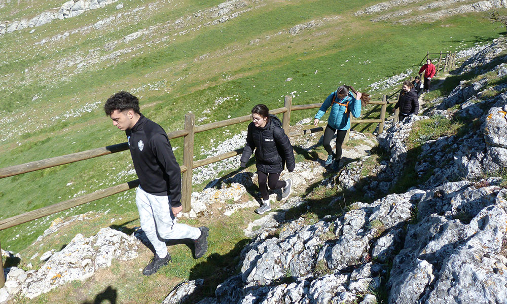 Finalmente tomamos el camino directo al pueblo. Ahora contemplamos el mismo valle desde abajo. Las conversaciones y las risas surgen espontáneas. Da gusto estar entre amigos y hablar de todo y de nada. Antes de que nos demos cuenta, ya estamos en el pueblo. Aunque no nos apetece en absoluto, nos metemos en la furgoneta e iniciamos la vuelta para comer en casa. Una mañana preciosa de naturaleza, deporte, amistad, paisajes, historia, risas y sueños compartidos. No se puede conseguir más en menos tiempo.