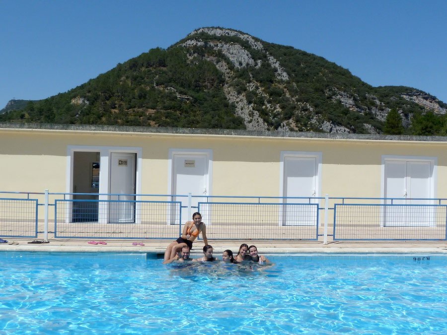 Hacia el mediodía volvimos a Oña y nos fuimos a comer a las piscinas municipales. Unas piscinas rodeadas de unas peñas muy a propósito para fotografiar. Un bañito antes de sacar los bocatas, refrescos, snacks, dulces y demás. Comida a la sombra de un carpa, un rato de descanso y digestión, y nuevas inmersiones en el agua. Cuando empezó a venir mucha gente, nos dimos el último baño y fuimos al antiguo jardín de los benedictinos donde nos esperaba Boni.