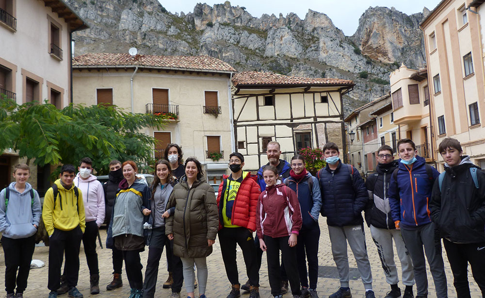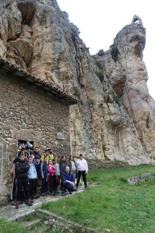 A la mañana siguiente iniciamos la mañana con una interesante reflexión de Almudena sobre la ecología. Posteriormente nos acercamos a la ermita del Cristo de Barrio que se encuentra en la mitad del arriscado desfiladero de Pancorbo. Vimos lo que tenía de románico, incluso como habían aprovechado algunos sillares de un templo romano. Luego pasamos al otro lado de la Nacional I y visitamos la pequeña ermita de la Virgen de Pancorbo, muy fotografiada por el curioso campanil que tiene sobre una peña.