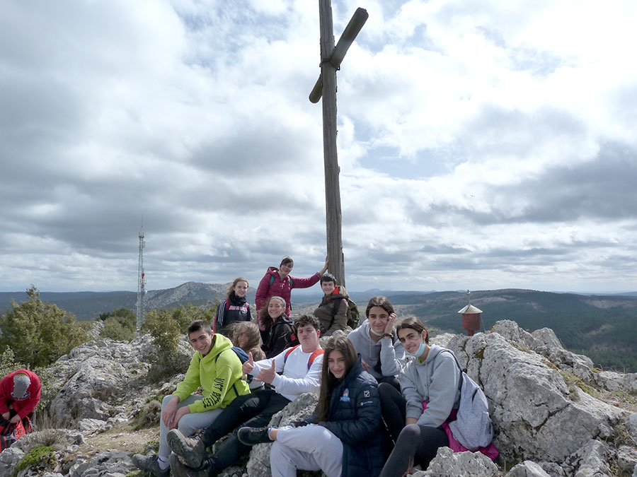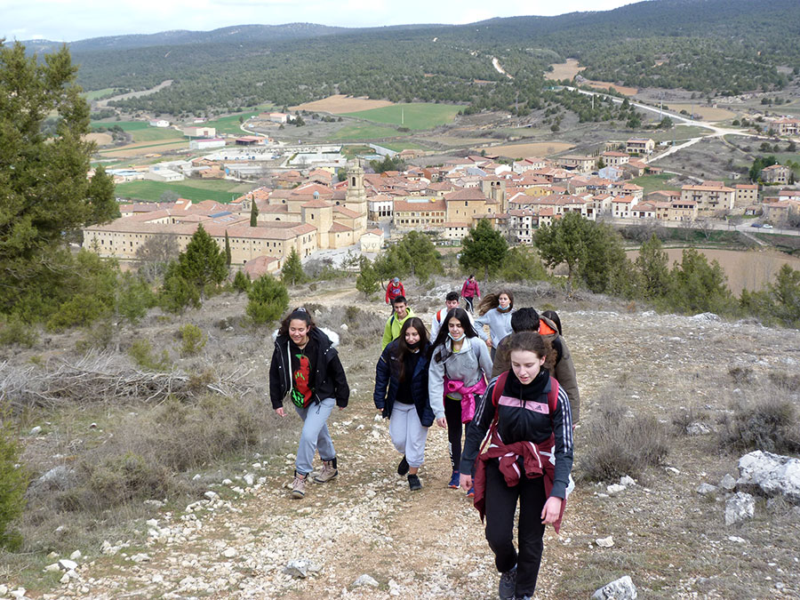 Al llegar, Serafín nos comentó la ruta que íbamos a hacer y nos pusimos en camino. Tomando el Camino del destierro del Cid, subimos por el monte de santa Bárbara hasta un poco antes del puerto de Peñacoba. Las primeras rampas nos costaron un poco porque eran muy empinadas, pero la vista del monasterio y del pueblo nos compensaron. Antes de llegar al puerto, dejamos el itinerario cidiano y, monte a través, nos dirigimos hacia la línea de cumbre. Allí tomamos un ancho camino que llegaba hasta las torres de comunicación que se encontraban cerca de la cuspide.