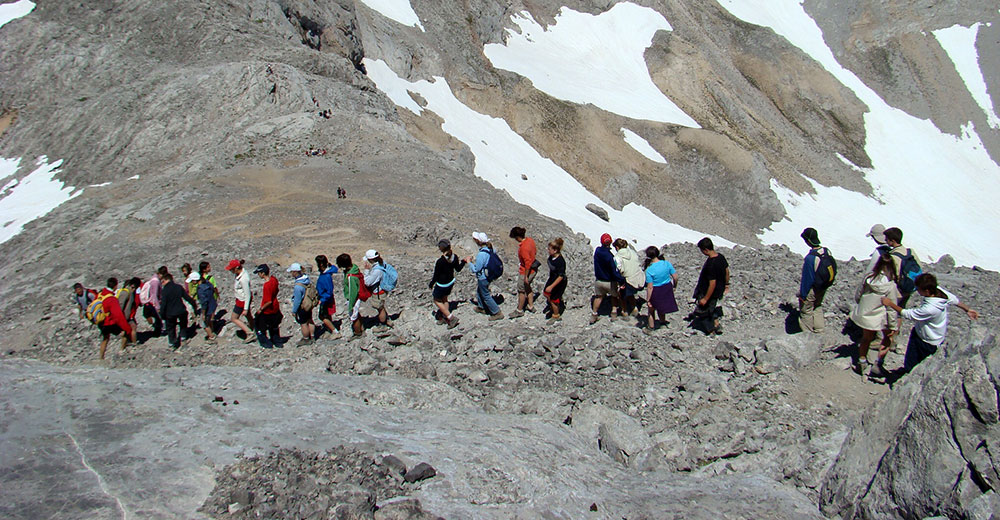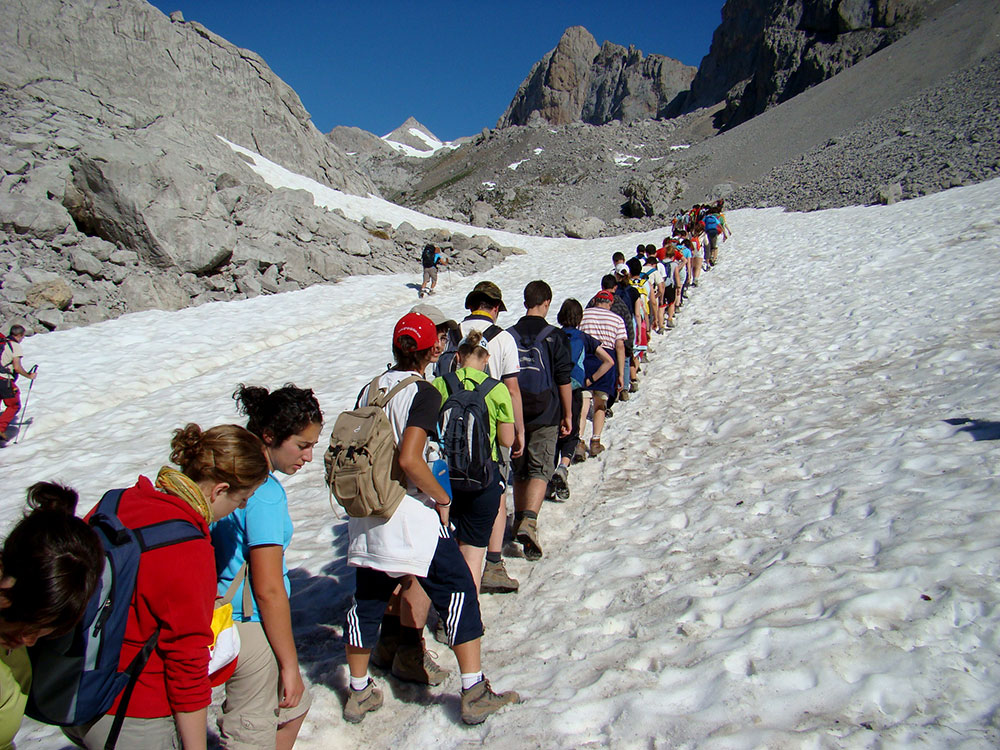 En el descenso aprovecharemos para jugar con la nieve ¡en julio! Incluso, podremos deslizarnos en algunos tramos. Volveremos al teleférico y descenderemos rápidamente hasta nuestro camping con la satisfacción de haber coronado una cumbre importante de casi 2.600 metros sobre el nivel del mar.